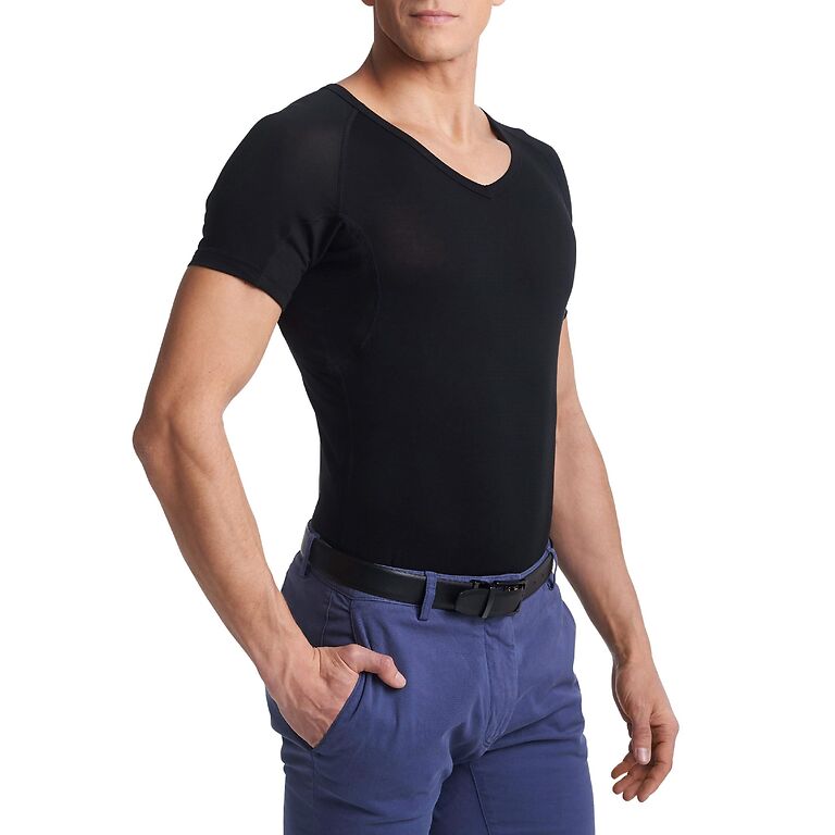 بفضل الأجزاء الكتيمة ، تحمي قمصانك أيضًا من البقع الصفراء الناتجة عن التعرق المفرط. تحمي القمصان ملابسك من علامات العرق الدائمة والتي لا تمحى ، وبالتالي إطالة عمر القطع المفضلة لديك في خزانة ملابسك.